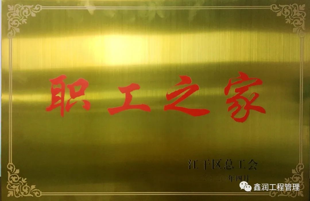 喜訊!浙江鑫潤工程管理有限公司工會委員會被江干區總工會授予“職工之家”稱號!