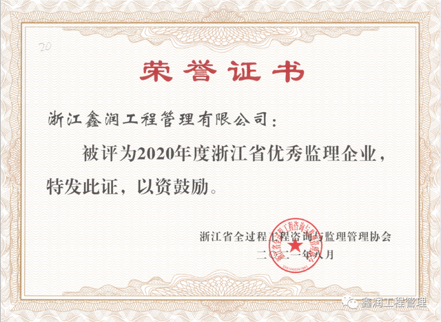 日前,浙江省全過程工程咨詢與監理管理協會公布了2020年度浙江省優秀監理企業的獲獎名單。全省共有56家企業評為浙江省優秀監理企業。浙江鑫潤工程管理有限公司連續多年榜上有名